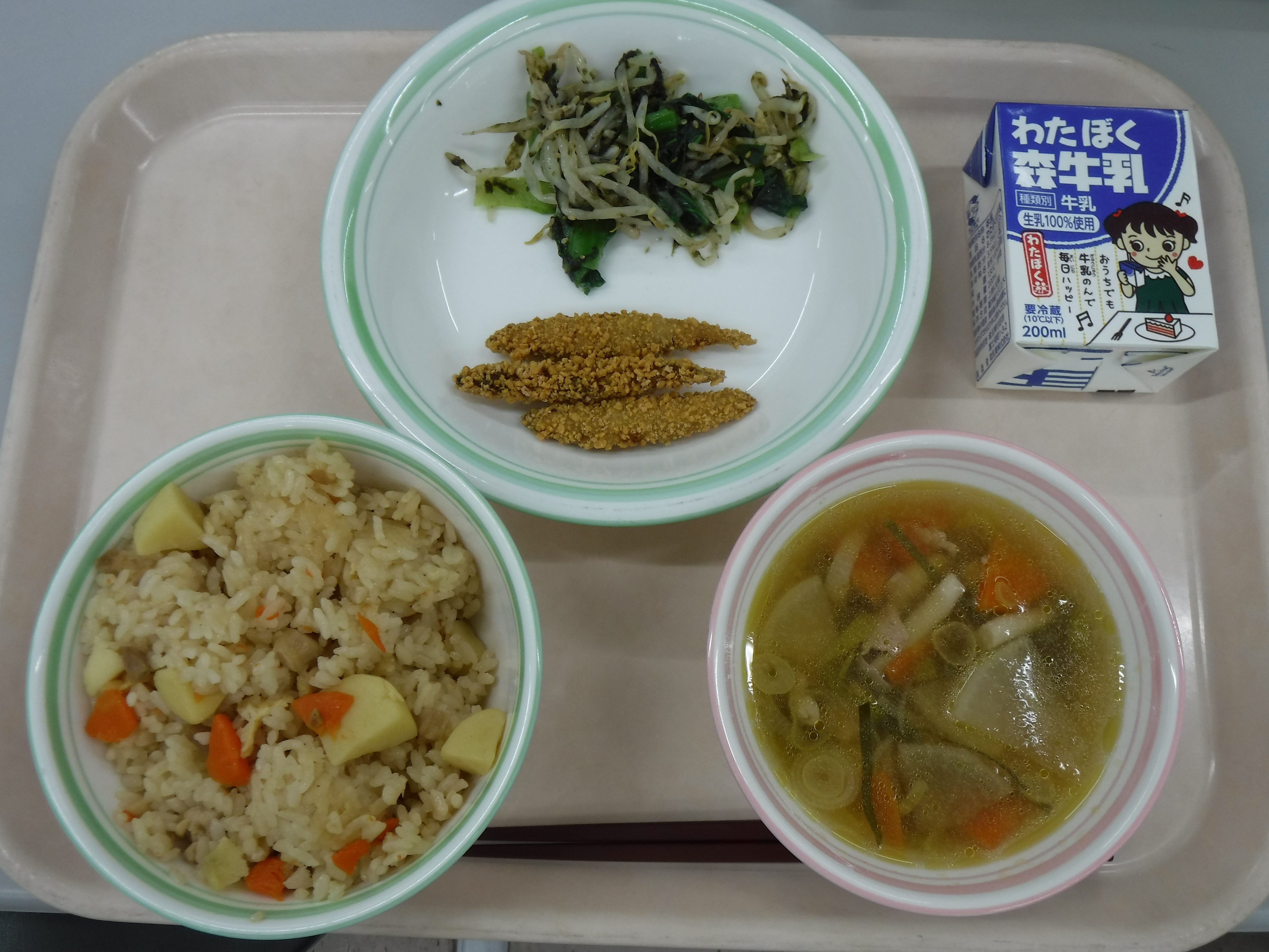 ・くわいごはん ・牛乳 ・きびなごカリカリフライ ・のり香味和え ・芋だんご汁
