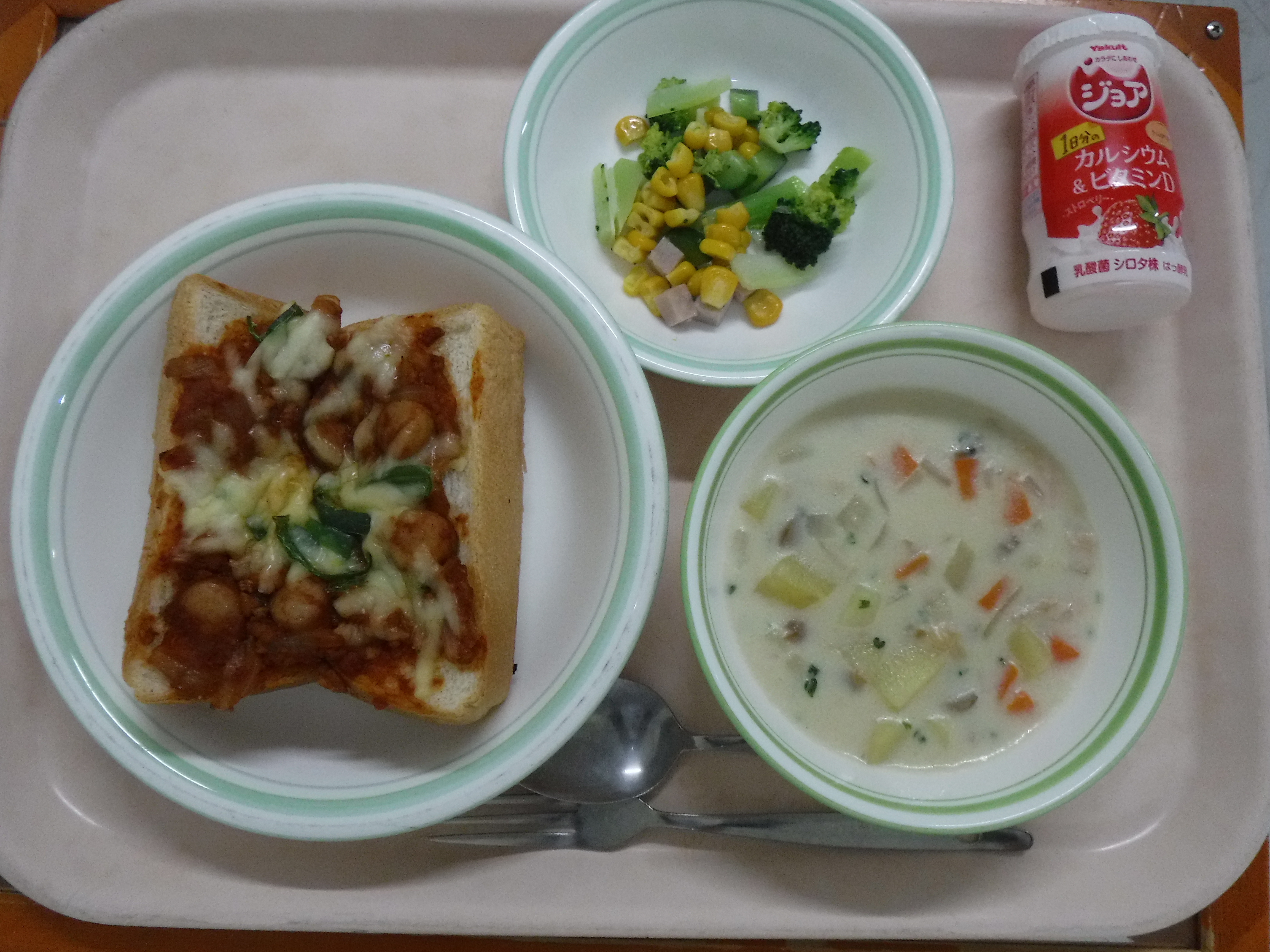 ・スパイシーピザトースト ・ジョア(ストロベリー) ・クラムチャウダー ・カラフルサラダ